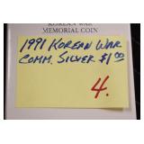 - 1991 Korean War Commemorative Proof Silver Dollar