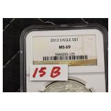 - Buyers Choice of (4) Silver American Eagles MS69 Certified – (2014, 2012, 2014-W, and 2014-S)
