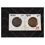 - Pair of Large Cents – (1845 and 1846) – VF