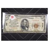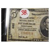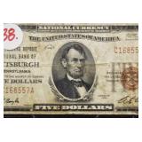 - 5.00 National Currency – Series of 1929 – Farmers Deposit National Bank of Pittsburgh, PA