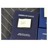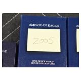 - Buyers Choice of (11) 1-Ounce Proof Silver Eagles – (1) 2000, (1) 2001, (2) 2003, (2) 2004, (2) 2005, (1) 2006, and (2) 2007