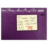 - Buyers Choice of (5) U.S. Mint Proof Sets – (1993, 1994, 1995, 1996, and 1998)