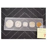 - 1938 U.S. Coin Set – Including: Half Dollar, Washington Quarter, Mercury Dime, Buffalo Nickel, and Lincoln Cent