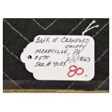 - 5.00 Note – Bank of Crawford County – Meadville, PA – 2/1/1863 – Serial No. H230-10-W426