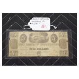 - 5.00 Bank Note – 1840’s – Northhampton Bank, Allentown, PA – PCGS 30
