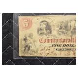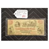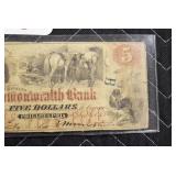 - 5.00 Note – Commonwealth Bank – Philadelphia, PA – 4/1858 – Serial No. 34-H305-213-W747