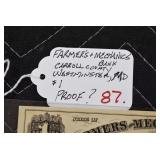- 1.00 Note – Farmers & Mechanics Bank of Carroll County – Westminster, MD – Proof?