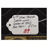 - 1.00 Legal Tender Large Note – Series of 1862 – Red Seal – F17a