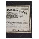 - Hanover & York Railroad Company Stock Certificate – April 10th, 1844