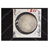 - 1794 4-Reales Silver Spanish Coin