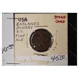 - Lot of (4) Civil War Store Cards/Tokens – Allentown Trust, Garland’s Fine Ale, Hardware and Miller