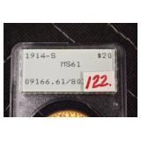 - 1914-S St. Gaudens 20.00 Gold Coin – PCGS MS61