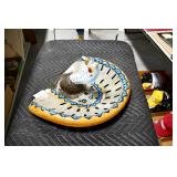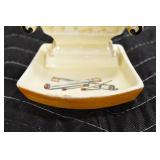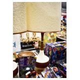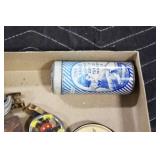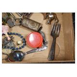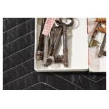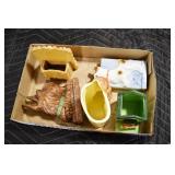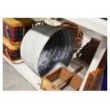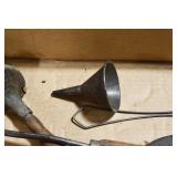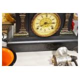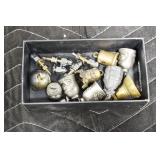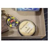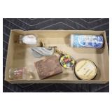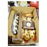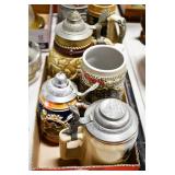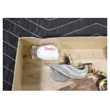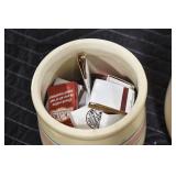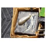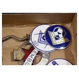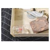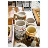 Antiques and Collectibles: (8) Longaberger Baskets of Various Sizes and Styles, (12) Lots of Various Ball Caps, (5) Lots of Marbles, (6) Lots of Various Wrist and Pocket Watches, Sterling and Other Jewelry, 30+ Lots of Various Stamps, Large Amount of Vintage Scales, Large Amount of Vintage/Collectible Tools, Cast Fry Pans, Cast Trinkets, Pottery Crocks and Jugs, Ceramic Items, German Steins, Wild Turkey Decanters, Vintage Advertising Items, Ash Trays, Turkey Head, Turkey Plaque, and Hummingbirds Hand Carved and Painted by Richard Shrader of Irishtown PA, Bird Bath, Carved Wooden Masks, Copper and Brass Items, Tinware, Wind Chimes, Deer Bank, Vintage Keys, Tokens, Quilts, Bust Figures, Mantle and Other Clocks, Vintage Dial Typewriter, Daguerreotypes, Woodware, Old Photographs, Vintage Woven Baskets, Vintage Picnic Baskets, Cigar Advertising Items, Whitehouse Christmas Ornaments, Holiday Decorations, Vintage Holiday Cards, Local and Other Postcards, Bobbi Becker Prints, Framed Prints and Pictures, Glass Ball Jars, Pink Depression, Vintage Glass Bottles, Milk Bottles, Glass Dog Figures, and Other