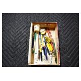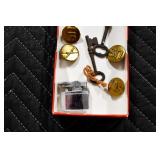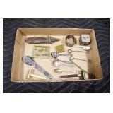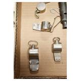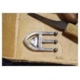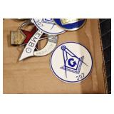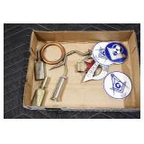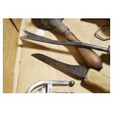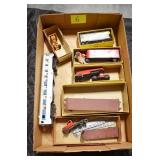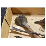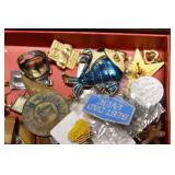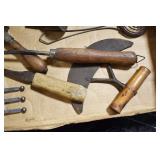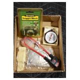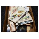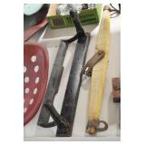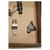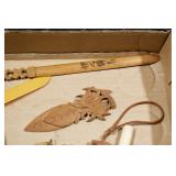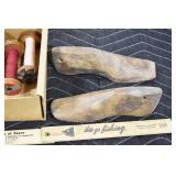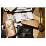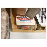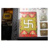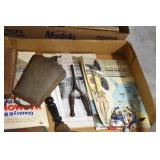 Sporting and Militaria: Animal Trap, Leapers Accu Shot Scope, Vintage Hunting Articles, Wooden Decoys, Fishing Reel, Large Amount of Folding, Pen, and Sheath Knives, Military and Order of Red Man Ribbons, Patches, and Badges, Nazi Ryker Case Display, Vintage Military Photographs, and Other