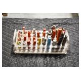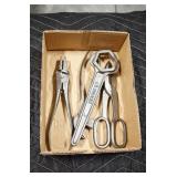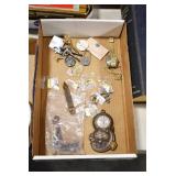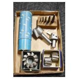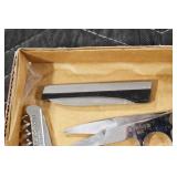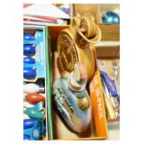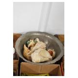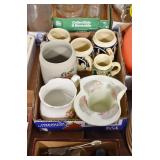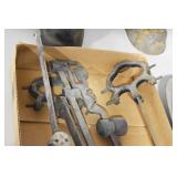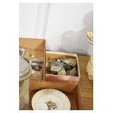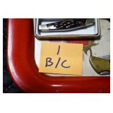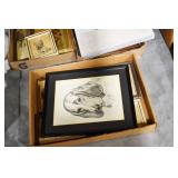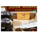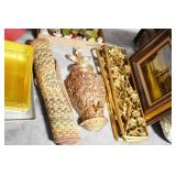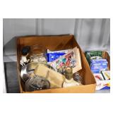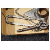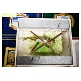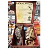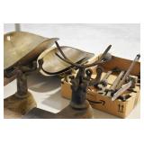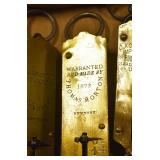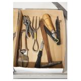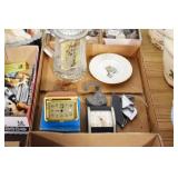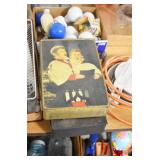 Antiques and Collectibles: (8) Longaberger Baskets of Various Sizes and Styles, (12) Lots of Various Ball Caps, (5) Lots of Marbles, (6) Lots of Various Wrist and Pocket Watches, Sterling and Other Jewelry, 30+ Lots of Various Stamps, Large Amount of Vintage Scales, Large Amount of Vintage/Collectible Tools, Cast Fry Pans, Cast Trinkets, Pottery Crocks and Jugs, Ceramic Items, German Steins, Wild Turkey Decanters, Vintage Advertising Items, Ash Trays, Turkey Head, Turkey Plaque, and Hummingbirds Hand Carved and Painted by Richard Shrader of Irishtown PA, Bird Bath, Carved Wooden Masks, Copper and Brass Items, Tinware, Wind Chimes, Deer Bank, Vintage Keys, Tokens, Quilts, Bust Figures, Mantle and Other Clocks, Vintage Dial Typewriter, Daguerreotypes, Woodware, Old Photographs, Vintage Woven Baskets, Vintage Picnic Baskets, Cigar Advertising Items, Whitehouse Christmas Ornaments, Holiday Decorations, Vintage Holiday Cards, Local and Other Postcards, Bobbi Becker Prints, Framed Prints and Pictures, Glass Ball Jars, Pink Depression, Vintage Glass Bottles, Milk Bottles, Glass Dog Figures, and Other