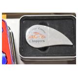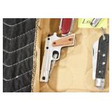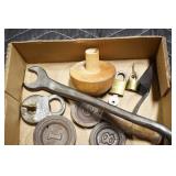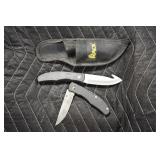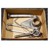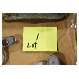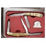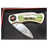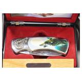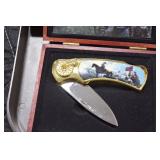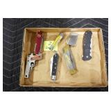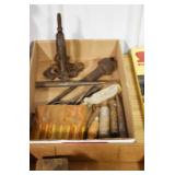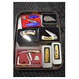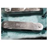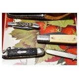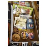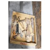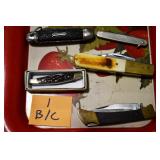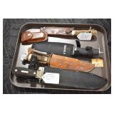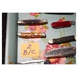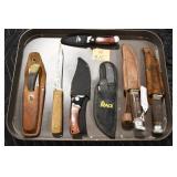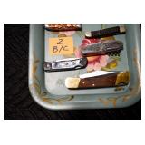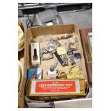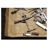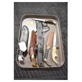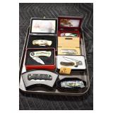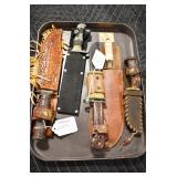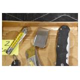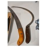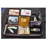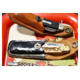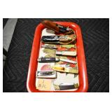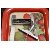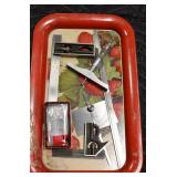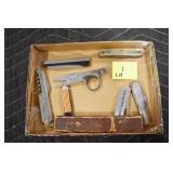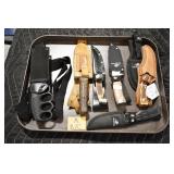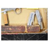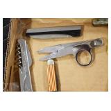 Sporting and Militaria: Animal Trap, Leapers Accu Shot Scope, Vintage Hunting Articles, Wooden Decoys, Fishing Reel, Large Amount of Folding, Pen, and Sheath Knives, Military and Order of Red Man Ribbons, Patches, and Badges, Nazi Ryker Case Display, Vintage Military Photographs, and Other