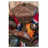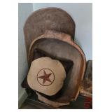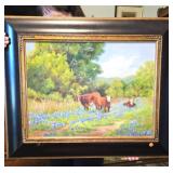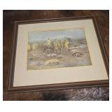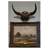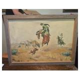 ESTATE SALE - CLASSY COWBOY "A CLASSY COWBOY THAT WAS A TRUE COLLECTOR OF WESTERN ART and COLLECTIBLES" When you walk in this house its like WOW everywhere you turn!! ESTATE SALE OF KENNITH HAMMOND He retired as a President of a Bank. He loved his cowhides - bronzes - 67 paintings - pottery - western furniture - antiques - collectibles!! Old West 60" Round Dining Table with 4 Chairs - Farmhouse Blue Cupboard - Primitive Green Pie Safe or Jelly Cupboard with punched tin panels - Cowhide Wing Back Chair - Rustic Twig Chairs - Rustic Live-Edge Wood Chest - Western Leather Longhorn Skull Design High Back Chair - Western Red Leather and Cowhide Armchair with Ottoman - Rustic Hand-Painted Dining Table with Distressed Teal Finish - Antique Ornate Dressers - Pair of Renaissance Style Carved Wood Armchairs - Leather Recliner - Rustic Desks - Horn Mounts - Bronzes - Paintings - Sketches - Men's and Ladies Clothes - Pedal Loom Several Mexican Serapes (blanket) - Dhurrie (Handwoven Flat-Weave) Rugs - Spurs - Horse Bridals - Glazed Stoneware - Queen Remote Bed - So Much More!! |