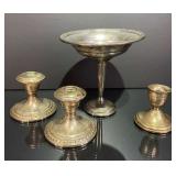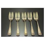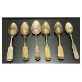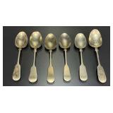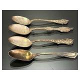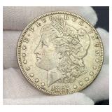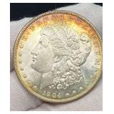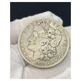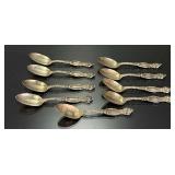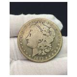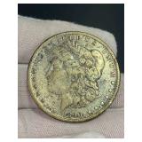 15507 Westmoreland Sterling Silver Flatware Service, weighing 1156 grams (not including the 10 butter knives) 45318 Unmarked Gold Chain weighing 11.24 grams (guaranteed 14k or close to) 45320 Sterling Silver Cake Knife and Fork, weighing 199.5 g. In presentation box 45321 9 Sterling Silver Spoons weighing 235.9 g. Service for 8 plus 1 additional engraved with portrait 45322 11 Sterling Silver Spoons weighing 221 grams 45323 5 Sterling Silver Spoons weighing 229 g 45324 Fine Arts Southern Colonial Sterling Flatware, weighing 765 grams 45325 International Sterling Joan of Arc Flatware weighing 520.5 g (very similar pattern to previous lot) 45326 Rogers Bros. Plated Flatware 45327 Tiffany & Co. Sterling Silver Baby Cup, Spoon, Fork. w/ Original Receipt, weighing 156.5 grams 45328 10k Gold Clip, approx. 2.8 grams 45329 17j Hamilton Pocket Watch, GF, not running 45330 Appears to be an 1876 Trade Dollar. HINGED DOOR WITH MILLED OUT CAVITY (see video) containing lock of human hair. Momentemorium 45331 2 Pocket Watch Fob Chains 45332 Pair of 9" Sterling Silver Candlesticks, Tiffany & Co., 823 grams (weighted) 45333 Sterling Silver Cigarette Case, 118 grams 45334 Sterling Silver Change Purse (leather interior is unusable), weighing 116 grams 45335 Monogrammed Sterling Silver Spoons by Caldwell and Co., weighing 358 grams 45336 Gorham Sterling Silver Cream and Sugar, 172 grams 45337 Sterling Ladle by Hamilton & Diesinger, 111.5 g 45338 2 Sterling Strainers, 51.5 g 45339 Sterling Silver Nut Bowl and Baby Cup, weighing 118 grams 45340 Sterling Ladles and Skimmers, combined 122 g 45341 2 Sterling Silver Ladles, 82.5 g 45342 Sterling Silver Souvenir Spoons, 96 grams 45343 Sterling Souvenir Spoon for Niagara Falls with Native American. a very nice spoon. 37 g 45344 Sterling Souvenir Spoons, Architecture Themed. 96 g 45345 Sterling Silver Souvenir Spoons, 98 grams 45346 6 Ornate Sterling Silver Forks, 181 grams 45347 Pair of Sterling Candlesticks, weighted bases 45348 Sterling Compote (bent) and Candlesticks. 825 grams but all with weighted bases. 45349 Group of Sterling Silver Brushes 45350 5 Sterling Silver Forks, 147.5 g 45351 5 Sterling Silver Forks, 200 g 45352 8 Sterling Silver Spoons, 162 grams 45353 8 Sterling Silver Spoons, 159 grams 45354 Sterling Spoons, 188.5 g 45355 Sterling Silver Spoons and Other, 198 g 45356 Antique Spoons. 100 g. Not marked, pliable, possibly Coin Silver 45357 Flatware with all Handles marked Sterling 45358 Sterling Silver including Towle Kids Forks and Spoon, Napkin Ring, Caldwell. 114 grams 45359 Pair Shakers (marked Sterling weighted, poor condition) plus 2 Coasters Marked Sterling 45360 Men's Hamilton Wristwatch. Not Running. Removed back plate, marked 14k gold. Weighed back plate only, weighing approx 4 grams 45361 Bulova Men's Watch and a Women's Bulova Movement. (neither is running, both are GF) 45362 Small Antique Pocket Knife, Clasp is Marked 14k 45363 Hamilton 23j Pocket Watch in 18k Gold Case. Dated 1927. Observed it running, loose plastic crystal lens. 45364 Watch Fob Chain. Both Clasps marked 14k, weighing approximately 11.4 grams 45365 14k Men's Ring, weighing approximately 19.1 grams 45366 Gold Men's Ring. Marked but can't read, tested to 14k, weighing approximately 13.83 grams 45367 Edwardian Era Clasp, marked 14k, weighing approximately 2.82 g 45368 Pair of Cufflinks, marked 14k, weighing approximately 7.88 grams. presumed embedded diamond, but untested. plus Clip marked 14, weighing 4.3 g 45369 Pair of Cufflinks marked 14k, weighing 5.65 grams 45370 Pair of Cufflinks marked 14k, weighing approximately 5 grams 45371 Photo Locket Pendant, interior marked 14k, weighing approximately 9.05 grams 45372 14k Gold Chain, weighing approximately 5.69 grams 45373 14k Pendant with Blue Stone weighing approximately 5.88 grams. Included chain is not gold. 45374 14k Masonic Pin dated 1901 (.84g) and a Hat Pin (unmarked but the head tested to 14k) 45375 Chain marked 14k, pendant is unmarked and missing stone. Combined weight is approximately 1.7 g 45376 1857 Gold $1 Coin with Pendant Mount 45377 Cufflink Set. Gold Filled, marked 1/20 of 12k 45378 Pocket Watch Chain, both clasps marked 10k, weighing 7.28 g 45379 Antique Ring with Green Stone (possible Emerald). (weighs 1.65g, tested with 10k acid, see last photo) 45380 Very Small 10k Wedding Band, approximately .29 grams 45381 Locket with Human Hair, Victorian Mementomorium 45382 Victorian Portrait Pins and Photo Lockets 45383 2 Antique Pocket Watches. Louis Jacot in .800 Case and Enamel Dial (missing crystal). neither appear to be running. 45384 Cufflink Set in a fitted Tiffany & Co. Box 45385 Hat Pin marked 14k, weighing approximately 1.5 grams 45386 Collection of Hat Pins. Ornate with Pink Stone one is marked 14 Y (Y not K), 45387 Cufflinks, marked 14 in a C (Carrington mark for 14k, tested good) weighing approximately 14 grams 45388 Pair of 10k Cufflinks, weighing approximately 4.75 grams 45389 Cameo Pin, marked Marathon 10k, weighing about 2.3 grams 45390 1878 Morgan Silver Dollar - 7 tail feather type 45391 1878 S Silver Dollar 45392 1879 Silver Dollar 45393 1879 S Silver Dollar 45394 1879 S Silver Dollar 45395 1880 Silver Dollar 45396 1880 O Silver Dollar 45397 1880 S Silver Dollar 45398 1880 O Silver Dollar 45399 Silver Dollar - possibly 1883 O 45400 1881 O Silver Dollar 45401 1881 S Silver Dollar 45402 1882 Silver Dollar 45403 1882 Silver Dollar 45404 1882 Silver Dollar 45405 1883 O Silver Dollar 45406 1883 O Silver Dollar 45407 1884 Silver Dollar 45408 1884 O Silver Dollar 45409 1884 S Silver Dollar 45410 1884 S Silver Dollar 45411 1884 Silver Dollar 45412 1885 Silver Dollar 45413 1886 O Silver Dollar (pierced) 45414 1886 S Silver Dollar 45415 1888 Silver Dollar 45416 1889-O Silver Dollar 45417 1889 Silver Dollar 45418 1889 O Silver Dollar 45419 1889 O Silver Dollar 45420 1889 O Silver Dollar 45421 1889 Silver Dollar 45422 1890 O Silver Dollar 45423 1890 S Silver Dollar 45424 1890 Silver Dollar 45425 1891 O Si