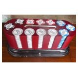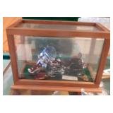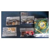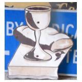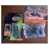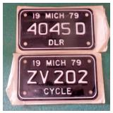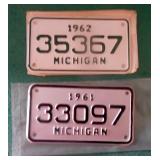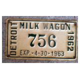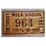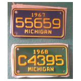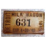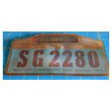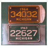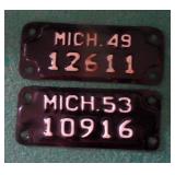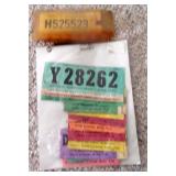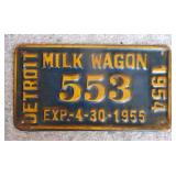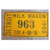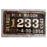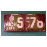 DELECTABLE COLLECTIBLES: Case "store" display cabinet, vintage Milk Wagon License plates (Detroit, Mi.)Over 400 "New" vintage/retro license plates, large collection of vintage motorcycle and boat license plates. Lighted Union 76 advertising sign, Pennz Oil sign, Circa 1990's Star Wars collectible action figures, vintage Goebal beer sign, antique Post Office boxes, vintage baseball game, Harley Davis collectibles of all kinds, Keen Kutter hatchets, & axes, Winchester hatchets, Boy Scout hatchet, Boy Scout pins, first aid kit, canteen and more. Yardsticks, vintage unopened tobacco boxes, arrowheads, size sm jump suit, circa 1960's Chevy hubcaps, violin w/case, Chevrolet/Fisher Body soapbox derby steel helmet, Elvis collectibles, and many other cool collectibles to numerous to mention. SPECIAL NOTE: The newspaper ads state the milk wagon plates are 1930's. That is not correct. The dates range from 1946 to 1950.