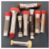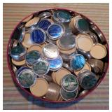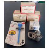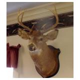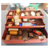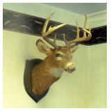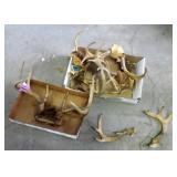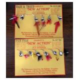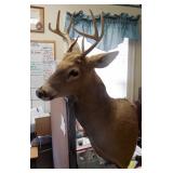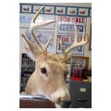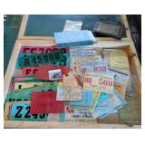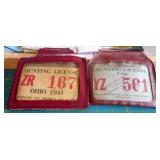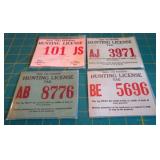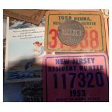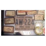 HUNTING/FISHING: Hundreds of vintage hunting licenses (paper & metal). fishing lures, flies. vintage fly rods, Archery items, three deer mounts, moose mount, duck decoys,collectible ammo boxes (empty), lots of ammo, and more.