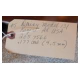 FIREARMS: Model 77 Winchester 22 caliber, Sevens Arms & Tool Company 32 short, single shot, Model 5B 12 gauge shotgun (made in Brazil), Winchester Model 37A,12 gauge shotgun, Daisy Model 131.177 caliber, Knickerbocker 12 gauge dble barrel shotgun, Remington Nylon 66, 22 gauge shotgun, Browning 22 caliber rifle, Marlin, Glenfield Model 60, 22 caliber, semi-automatic, Winchester Model 120 12 gauge dble barrel shotgun, Crosman Silent .22 air rifle, 45 caliber black powder revolver, Daisy BB handguns, Benjamin air pistol, circa 1940 "Popsicle" gun, Starter pistol. More to be added!