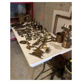 No parking on Blueberry Hill. Please park on Royal Ln. Amazing home is overloaded with better furniture, decor, clothing, bags, shoes, accessories, travel masks, idols and more! Beautiful live edge dining room table with 10 Chic Teak chairs, Chesterfield sofa, loveseat & chair, rustic sideboard & mirror, metal armor desk & bench, Legacy Drexel 5 piece bedroom set, large bench, carved, footed 6 piece master bedroom set with armoire, wardrobe, pair of ambler lamps, giant Talavera ginger jar, large spotlight floor lamp, pair of teal floor vases, dresser with floral metal insert, Serta Ainsley pullout loveseat, fireplace screens and tools, loaded with decorative accent pieces, original Lou Abolafia & other artwork, mirrors, lamps, tribal masks & idols, Liberty Blue china, sets of Polish pottery, overloaded with designer & better clothing, designer bags, better bags, loads of boots, shoes, accessories, costume jewelry, LV, MCM, loads of Coach, Dooney and Burke and many more! Garage full of tools & car parts, Companion drill press, metal roller, Remington heater, better hand tools, car items! Too much to list! |