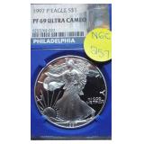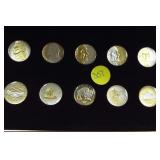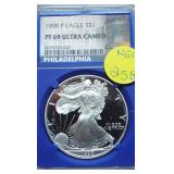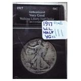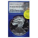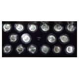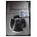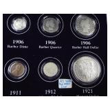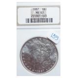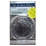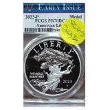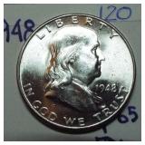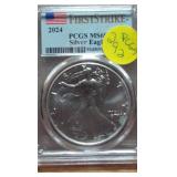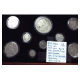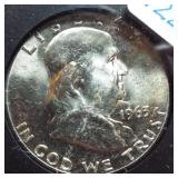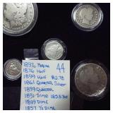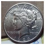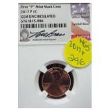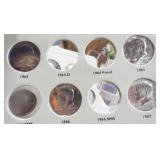 1 1940-49 Year Sets $8.50 Silver 1x 2 1950-59 Year Sets $8.50 Silver 1x 3 1960-69 Year Sets $4.25 Silver Plus Clad 1x 4 1909-00 1st and Last Year $4.90 Silver 1x 5 2000-17 17 Sacagawea & Stamps PR69 DCAM 6 1926-30 PDS 14 S L Quarters $3.50 Silve 1x 7 1913-37 25 Buffalo Nickels 1x 8 1909-09 100 Years of Lincoln Cents 1x 9 1892-16 25 Barber Quarters $6.25 Silver1x 10 1964-04 74 PD-Kennedy Halves 1x 11 1971-78d 29 Ikes w/ 10 Silver & Pr 1x 12 1964&14 PD Kennedy Halves 1x 13 2014pdsw Kennedy 90%Silver Set 1x 14 1946-64 47 Roosevelt Dimes $4.7 Silver1x 15 1942-45s War Nickel Set w/3 FS 1x 16 Box $1.45 Silver $4.17 Non 1x 17 1964-93 24 Kennedy Halves PR65-68 18 1909-58 45 Lincoln Cents & Stamps 1x 19 20th Cent Coins w/$6.10 Silver $2.75 Clad1x 20 Box 1878 & 1921 Peace Dollar 1x 21 2024 12 Sets of each $22.92Face 1x 22 1991 Mt Rushmore Set $4.50 Silver 1x 23 2006 Franklin 100 Anniv. $1.50 Silver1x 24 1909 Indian & VDB Cents NGC Stacks1x 25 2019+20 w Mints Rev Jeff & Cent PCS Pr69 26 Album Vice Presidents in 22kt Plate 1x 27 Album 43 President $s Vol 1&2 $43 1x 28 1880-09 30 Indian Cents & Stamps 1x 29 2005-23 38pd Kennedy Halve $19 1x 30 124 President Dollars 3 Books 1x 31 2015 12 Sets of Coins $22.92 Face 1x 32 2000-17 36pd Sacagawea Dollars 1x 33 1943pd +35p W L Halves $1.5 Silver 1x 34 2021pd 102 Quarters Fancy Display 1x 35 1857 58 Flying Eagles in Display 1x 36 1964-06d 55 Halves in 3 Littleton Books 1x 37 2014pd Kennedy Halves Gold Plated 1x 38 4pdso Morgan Dollars $4 Silver 4x 39 2005 6 1oz Fancy Silver Eagles 6x 40 2006p Franklin Scientist Dollar Pr70 41 2006p Franklin 300 Silver Dollar Pr70 42 2002w West Point Silver Dollar Pr70 43 2005p Marine Silver Dollar Pr70 44 1878 83 84 85 91 Morgan $ 1st Day cover 6x 44a 19th Century Coins $2.78 Face 1x 45 1879s 81s 80s 21s Morgan 1st Day Cover 4x 46 1882o86o 87o 88o 90o 99o 00o 01o “ 10x 49 1922 22s 23 25 26s 34s 35 Peace $s 7x 50 1881-08 23 Indians in Display 1x 50a 1847 Guanajuato Mexico 8 R AU 51 1788fm 1809 2&1/2 Colonial Reales 1x 52 1776jjr Bolivia ½ Real List $75 F 53 1889 British Lg Penny AU 54 1892 British Lg Penny XF 55 1959 Netherlands 2 ½ G Silver GemBU 56 Roll W L & Franklin Halves $10 1x 57 Roll Roosevelt Siver Dimes $5 1x 58 Roll Mixed Silver Dimes $5 1x 59 ½ Roll Silver Quarters $5 Face 1x 60 1804 Spike Half Cent VF 61 1808 Half Cent VF 62 1834 Half Cent Scratch VF 63 1853 Half Cent Red VF’ 64 1797 Lg Cent Stems Rev 97 XF 65 1818 Large Cent VF 66 1829 Large Cent G 67 1831 Large Cent VF 68 1846 Lg Cent Medium Date XF 69 1849 Large Cent VF 70 1843 Lg Cent Mature Head VG 71 1855 Large Cent Upright 5 MS63 72 1857 Flying Eagle MS63 73 1873 Indian Cent Close 3 MS60 74 1876 Indian Cent AU+ 75 1908s Indian Key RED AU+ 76 1909s Lincoln KEY RED MS64+ 77 1912 Lincoln RED MS65 78 1913 Lincoln RED GEM65+ 79 1914d Lincoln KEY XF 80 1918s Lincoln RED MS65 81 1865 69 Three Cent Nickel 2x 82 1908 Liberty Nickel MS65 83 23 Lincoln Cents 1x RED MS65 84 18 Liberty Nickels in Holders 1x 85 1835 Bust Half Dime F 86 1913s Buffalo Nickel ty1 NGC VF 87 1926s Buffalo Nickel NGC VG 88 1913-38 62 “ in Book List $1400 1x 89 1831 Bust Dime VG 90 1832 Bust Dime XF/AU 91 1899s Barber Dime MS63 92 1900s Barber Dime GEM MS65 93 1911d Barber Dime GEM MS64 94 1917 Mercury Dime MS65 FSB 95 1919 Mercury Dime Gem65 FSB 96 1943s Mercury Dime Gem65 FSB 97 1944s Mercury Dime Gem65 FSB 98 1806 Bust Quarter F 99 1831 Bust Quarter XF/AU 100 1858 Seated Quarter MS64 P/L 101 1877cc Seated Quarter VF+ 101a 1817 Bust Half F 101b 1836 Bust Half XF 101c 1839 Bust Half VG 102 1831 Bust Half F 103 1840 Seated Half Sm Ltrs MS63 103a 1876cc Seated Half F 104 1899 Barber Half MS63 105 1909 Barber Half MS62 106 1875 Seated Half G 107 1876s Seated Half G 108 1877 Seated Half G 109 1916 W L Half PCS VG 110 1916d W L Half PCS G 111 1917 W L Half PCS G 112 1917 W L Half GEN MS64+ 113 1936d W L Half MS63 114 1939s W L Half MS63 115 1942 W L Half NGC MS64 116 1945 W L Half MS64 117 1946s W L Half MS64 118 1946d W L Half NGC MS64 119 1916-45 14 W L “ in Special Holders 14x 120 1948d Franklin Half MS65 FSB 121 1963 Franklin Pr69 122 1963 Franklin MS65 123 1958d Franklin XF 124 1963d Franklin VG 125 10 Franklins in Special Holders 1x 126 1964 Kennedy Halves 2x 127 16 “ in Special Holders 1x 128 2023p Peace CAC 1st Day MS70 129 2021cc Morgan PCGS MS70 130 2021 Peace PCGS MS70 131 2023s Peace CAC Reverse PR70 132 1799/8 Bust Dollar 13 star Rev VF+/XF 133 1878 Morgan 8TF XF 134 1878cc Morgan G 135 1878s Morgan 2nd Rev VF 136 1878s Morgan XF 137 1878s Morgan G 138 1878cc Morgan List $4000 MS64 DMPL 139 1879s Morgan 3rd Rev AU 140 1879o Morgan MS60 141 1879s Morgan MS65 P/L 142 1879s Morgan Cleaned VG 143 1880o Morgan Cleaned AU 144 1880o Morgan Micro o MS64 145 1881o Morgan XF 146 1883 Morgan MS64 DMPL 147 1883o Morgan AU 148 1884 Morgan Cleaned AU 149 1884o Morgan AU 150 1885o Morgan MS64 DMPL 151 1883cc Morgan G 152 1885s Morgan Gem 65 153 1886 Morgan MS63 154 1886s Morgan GEM64 P/L 155 1887 Morgan NGC MS63 156 1888s Morgan MS63 DMPL 157 1889 Morgan MS63 158 1890 Morgan MS63 159 1890o Morgan MS63 DMPL 160 1890cc Morgan VF 161 1890s Morgan MS64 P/L 162 1890 Morgan Cleaned AU 163 1891o Morgan Rare MS64 P/L 164 1892 Morgan AU 165 1892cc Morgan MS64 DMPL 166 1892 Morgan AU/UNC 167 1893cc Morgan VG 168 1894 os Morgan VG 2x 169 1895s Morgan Key VF 170 1895o Morgan XF 171 1895o Morgan G 172 1896 Morgan MS63 173 1897o Morgan VG 174 1897s Morgan MS63 175 1898 Morgan VF 176 1898 Morgan MS63 177 1898s Morgan MS64 178 1898o Morgan MS64 179 1899 Morgan KEY MS64 180 1899o Morgan MS63 181 1899s morgan MS63 182 1900 Morgan MS64 183 1900o Morgan MS65 184 1901s Morgan MS64 185 1902 Morgan MS65 186 1902s Morgan VF 187 1903 Morgan MS63 188 1903o Morgan KEY GEM MS65 189 1904 Morgan MS64/65 190 1904o Morgan MS64 191 1904o Morgan MS63 192 1921s Morgan AU 193 1921 Morgan MS64 194 1921d Morgan MS63 195 1921s Morgan MS64 196 1889 96 21 21d Morgans 4x 197 1878s Morgan Fancy Display MS64 198 1921 Morgan Fancy