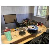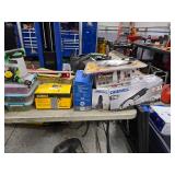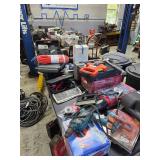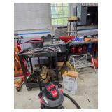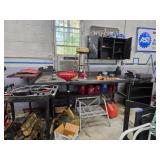 This garage shop includes: Auto lift, auto parts, fluids, power tools, hand tools, air compressor, ladders, metal work table, metal signs, hoses, weed eater, pole saw, shop vac, zip line, desk, chairs, fish cooker, grill, bikes,chain saws, new garbage cans, nail guns, cart on wheels, and much much more!! |