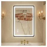 24x32 Inch LED Bathroom Mirror with Lights, Black Framed Bathroom Vanity Mirror with Frontlit & Backlit, Stepless Dimmable, Memory Functions, Anti-Fog, Wall Mounted, 3 Colors