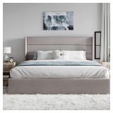 Queen Size Lift Up Storage Bed/Modern Wingback Headboard/Upholstered Platform Bed Frame/Hydraulic Storage/No Box Spring Needed/Wood Slats Support/Light Beige