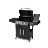 Propane Gas Grill Gas Stove 3 Burners and 1 Side Burner with Wheels (Stock Photo for Reference, Cabinet Only Has One Door)
