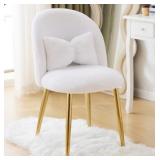 Ktaxon Vanity Makeup Chair Comfy Accent Chair Small Office Chair for Living Dining Room Bedroom Home Office Faux Rabbit Hair White