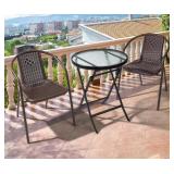 VINGLI Stackable Outdoor Chair Set of 2, Rattan Plastic Chair, Woven Rattan Cushion, Suitable for Backyard, Patio, Brown