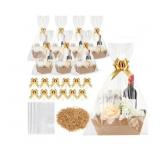 20 Pcs Gift Baskets Kit with 20 Bows, 20 Bags & Raffia for Birthday, Wedding, Christmas, Valentines (Brown, Gold)