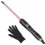 Wavytalk 3/8 Inch Small Curling Iron Wand for Short & Long Hair, Ceramic Barrel with Adjustable Temperature, Heat Resistant Glove Included (Rose Pink)