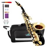 EASTROCK Soprano Saxophone Curved Bb Flat Black Sax Instruments for Beginners Intermediate Players with Carrying Case,Mouthpiece,Pads,Reed,Cleaning kit,neck Strap,White Gloves