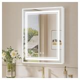 TokeShimi 24x30 Recessed Medicine Cabinet Mirror with Lights Tempered, 3-Color Stepless Dimmable Led Mirrored Medicine Cabinet Defog and Electrical Outlets, White Modern