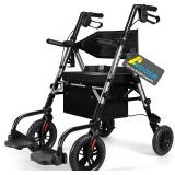 Foldable Rollator Walker for Seniors with Seat, Lightweight 2 in 1 Rolling Walkers Wheelchair Combo for Adult, Transport Chair with Brakes, Adjustable Seat and Handle, 300 Lb. Weight Capacity, Grey