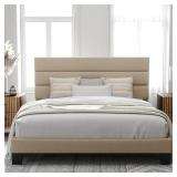 Allewie King Size Platform Bed Frame with Fabric Upholstered Headboard and Wooden Slats Support, Fully Upholstered Mattress Foundation/No Box Spring Needed/Easy Assembly, Beige
