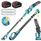 Seesii 2 in 1 Cordless 8 inch Pole Saw & Mini Chainsaw with 2 Battery, Power Electric Polesaw for Tree Trimming, Chain Saw with Extension Pole, Limb Branch Cutter Pruner PS800
