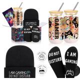 🎮 Gamer Gifts for Men: Want to give him the coolest game-themed gift? Our gift is the best choice for you. 1 x 16 oz glass with lid and straw, 1 x breathable and elastic cotton hat, 1 x soft and comfortable cotton socks, 1 x stainless steel novel and interesting decision maker coin, 1 x beautiful design on the outside, blank gamepad greeting card, you can write something you want to say inside.