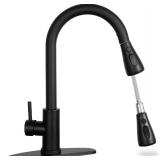 Matte Black Kitchen Sink Faucet with Pull Down Spray RV Stainless Steel Kitchen Faucet Pull Out Extension Utility Farmhouse Faucets for Sink 1 Hole Rent Apartment Dorm Single Handle Kitchen Faucet