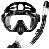 Snorkel Set, Zipoute Snorkel Dry Top Snorkeling Gear for Adults, Panoramic Anti-Leak and Anti-Fog Tempered Glass Lens, Adults Adjustable Snorkeling Set, Scuba Diving Swimming Training Snorkel Kit