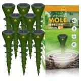 8 Pack Mole Repellent Screw Solar Powered Gopher Deterrent Stake for Outdoor Lawns with Electic Vibration, Repels Snake Vole Groundhog Armadillo from Yard and Garden