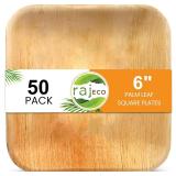 Compostable Palm Leaf Plates Like Bamboo Plates Disposable - 6 Inch Square 50 Party Plate, Natural Wooden, Eco-Friendly, Fancy Biodegradable & Disposable Dessert Appetizer Plate
