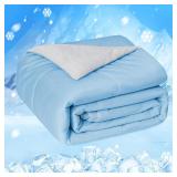 Cooling Comforter Japanese Double-Sided Cold Tech Fabric Cooling Blanket for Night Sweats Hot Sleepers, Q-Max 0.45 Soft Breathable Silky Smooth Lightweight, Blue Summer Comforter Queen