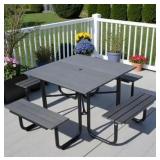 80 in. Black Square HDPE Steel Picnic Table 8 People with Umbrella Hole