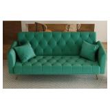 71 inch convertible love seat sofa American retr green velvet suitable for small living room bedroom office (Box 1 of 2, Missing Armrests)