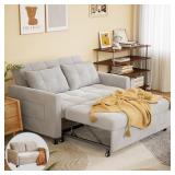 Gizoon Convertible Futon Sofa Bed, 3-in-1 Loveseat Sleeper Sofa with Pull Out Bed Couch, 53.2” Full Size Futon Couch with Side Pocket & Adjustable Backrest for Living Room, Linen Fabric, Light Grey