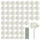 Auihiay 64 PCS Artificial Hydrangea Flowers, Silk Hydrangea Full Flowers Heads with Stems for Wedding Centerpieces, Home, Garden, Baby Shower, Party Decoration (Ivory)